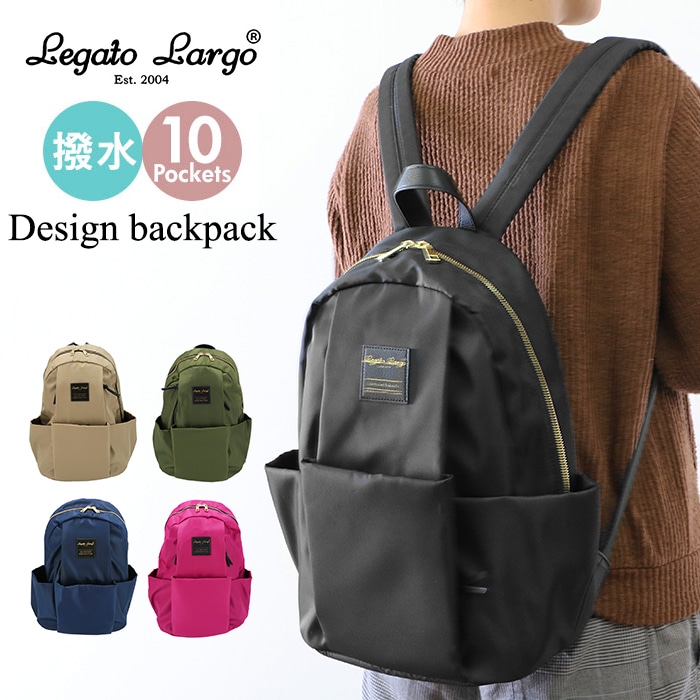 レガートラルゴ リュック 10ポケット 定番 通勤 通学 おしゃれ ママ レディース 大容量 ブランド Legato Largo はっ水 撥水 軽い 軽量 10ポケット シンプル 無地 大人 かわいい 上品 きれいめ デイパック マザーズリュック ママリュック はっ水 ナイロン調ポリ